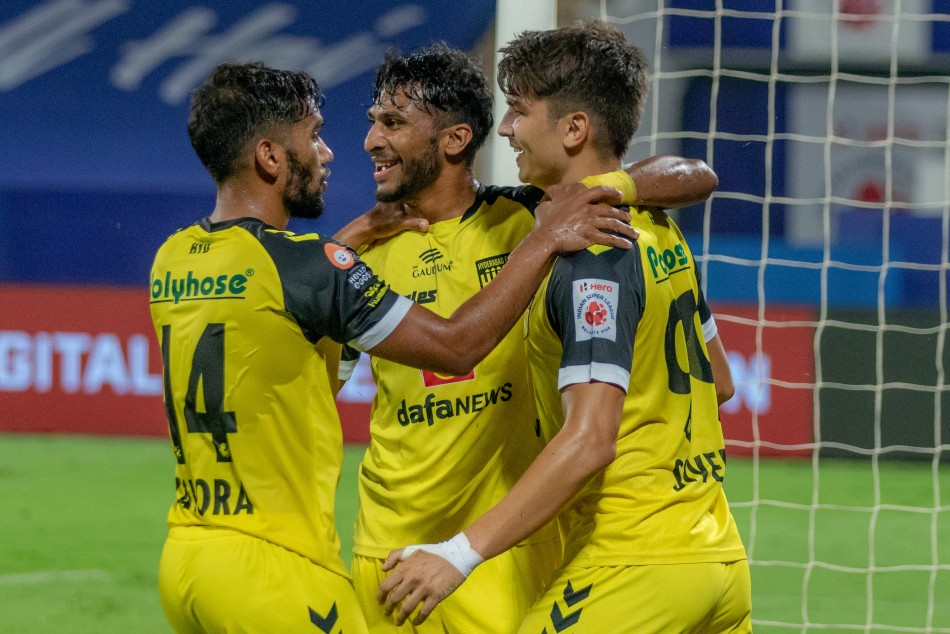 Kerala responded with an attempt that found the crossbar from a Chencho Gyeltshen left-footer after the Bhutan striker was set up by Harmanjot Khabra who flicked on a Adrian Luna corner in his path. At halftime, league leaders Hyderabad led 1-0.