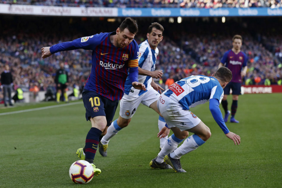 Madrid, March 31: Lionel Messi continued his remarkable run of form as his second-half double, including an impudent free-kick, helped Barcelona continue their march towards the La Liga title with a 2-0 win over Espanyol.