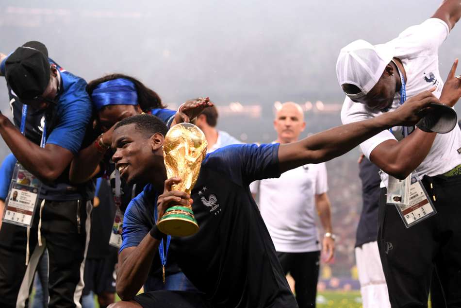 Pogba had already been pictured dabbing with the World Cup trophy on the pitch, before he and Mendy teamed up with Macron in a live Instagram video as the president replicated the dance move popularised by the Manchester United man.