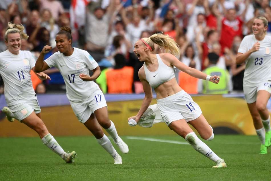 But Kelly ensured there would not be a ninth at England's national stadium, poking in a 110th-minute winner, tearing off her shirt and sprinting away in celebration. England had never won a senior European Championship, but after the men's team went agonisingly close last year, the women, led by skipper Leah Williamson, have gone one better.