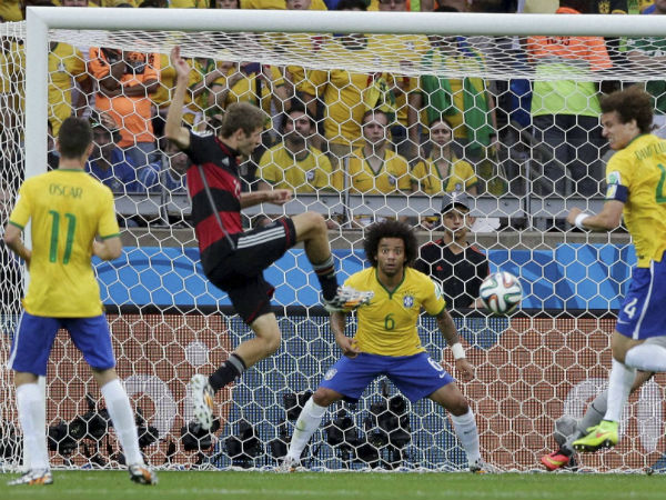 The German Blitzkrieg began in the 11th minute Thomas Muller scored his fifth goal of the tournament, inching closer to Colombia's James Rodriguez in the race for the Golden Boot. In the next 18 minutes, the Germans left the Brazilian defence in the ruins by pumping in four more goals to virtually seal the fate of the game. Miroslav Klose scored his record 16th goal [Read here] in the 23rd minute while Tony Kroos scored in the 24th and 26th minute. Sami Khedira made it 5-0 in the 29th minute. The two teams went into the break with Selcao fans left stunned and shocked.