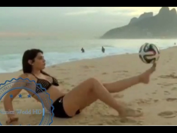 The video shows Castillo juggling the football (the ball resembles the official World Cup ball "Brazuca") and showing off her football skills.