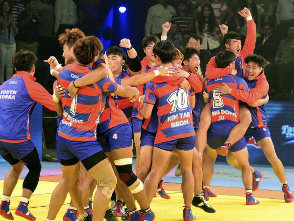 Anup Kumar scored three points with a super raid in the sixth minute as India led 5-4. The Koreans forced a super tackle in the seventh minute to lead 7-6. Rahul Chaudhry scored his first raid point in the 10th minute as India inflicted an all out to lead 12-9.