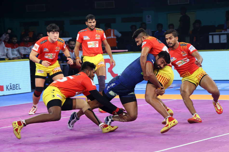 K Prapanjan kickstarted the proceedings for Gujarat Fortunegiants with a two-point raid in the second minute as they led 4-1.