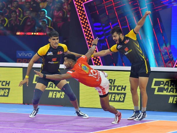 However, the Titans regained the lead at 10-8 in the 17th minute after a fantastic raid by Adarsh T. The Telugu Titans tackled Purna Singh and kept their noses in front at 12-9 at the end of the first half.