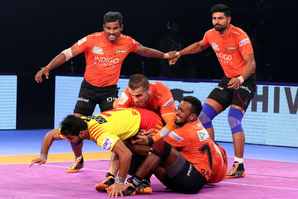 New Delhi, December 2: An impressive defensive show by U Mumba saw them beat Gujarat Fortunegiants 36-26 in the top-of-the-table clash in the Pro Kabaddi Season 6 here on Sunday.