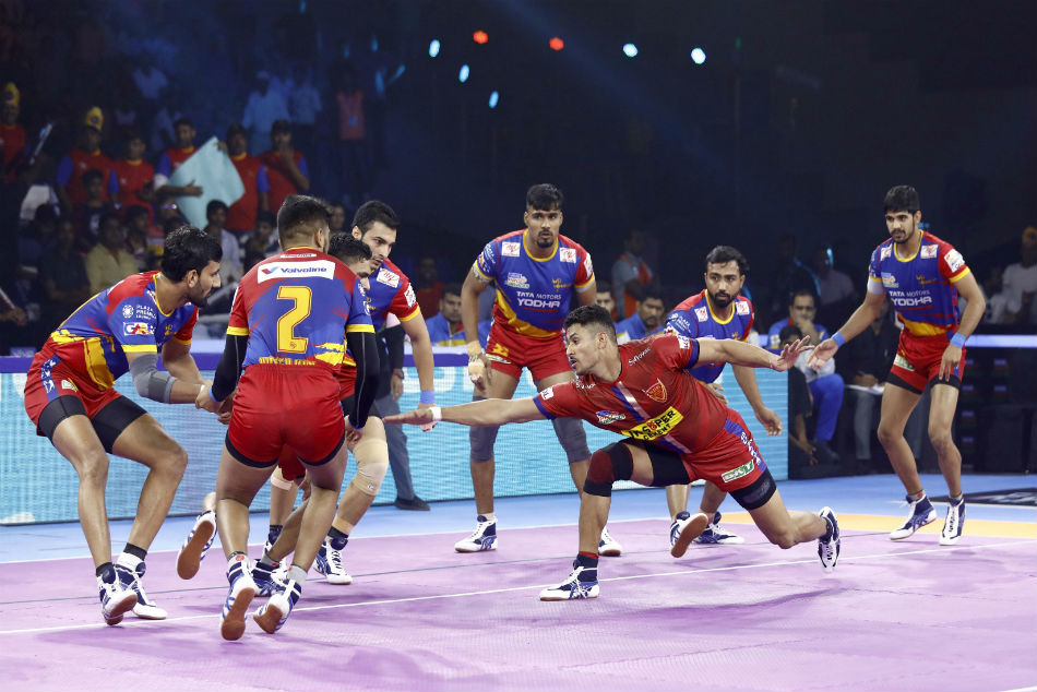 Bengaluru, October 5: UP Yoddha thrashed a much-changed Dabang Delhi KC 50-33 in front of their home crowd at the Shaheed Vijay Singh Pathik Sports Complex in Greater Noida on Saturday (October 5).