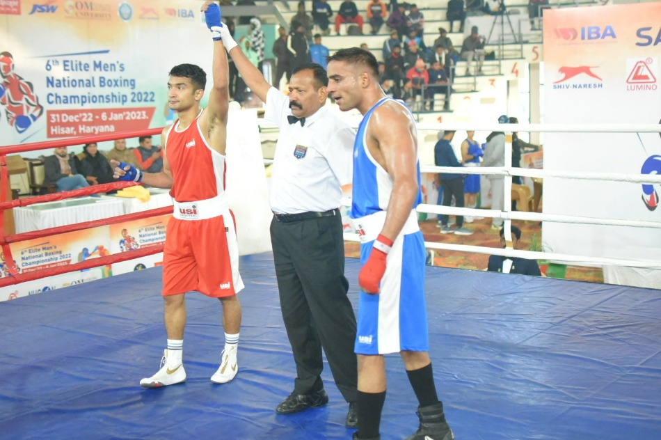 The 2022 Asian Championships bronze medalist duo of Govind Sahani (48kg) and Sumit (75kg) also cruised through to the semi-finals. While Govind defeated Vikash Singh of Uttar Pradesh with a 5-0 scoreline, Sumit secured a comfortable victory against Gourav Dabas of Delhi after the referee stopped the contest (RSC) in the first round.