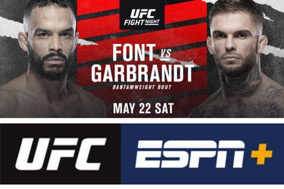 UFC FIGHT NIGHT: FONT vs. GARBRANDT will take place Saturday, May 22 from APEX in Las Vegas. All bouts will be available exclusively on ESPN+ in English and Spanish with the main card beginning at 7 p.m. ET / 4 p.m. PT and the prelims kicking off the action at 4 p.m. ET / 1 p.m. PT.