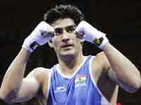 Putting aside the poor performance in Delhi Commonwealth Games, Vijender Singh thrashed Uzbekistan's Abbos Atove in the boxing 75kg category. Vijender took lead against his opponent in the very first round and continued it through out the game.