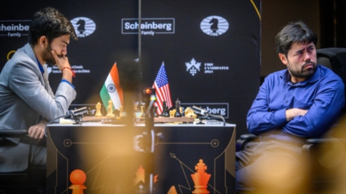 Gukesh, one of the two joint tournament leaders, managed to get a completely new position on move seven against Hikaru Nakamura in the Hyperaccelerated Dragon variant of the Sicilian Defence. The game took a quiet path, and a draw was a logical result.