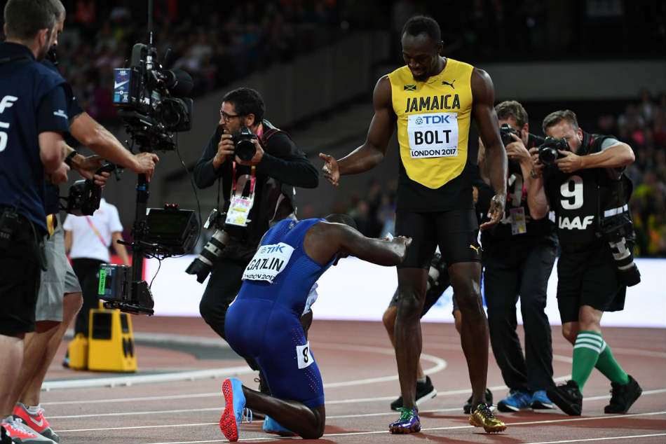 "I'm sorry I couldn't end it on a winning note, but I want to thank you for your support," said Bolt, who embraced Gatlin after they streaked through the line with no clear victor immediately apparent.