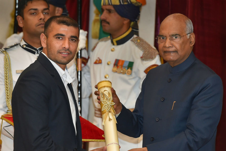 President Kovind presents Padma Shri to Bajrang Punia his achievements in wrestling. The grappler represents India in the 65Kg category. He is recognised for his achievements in the Commonwealth Games and Asian games.