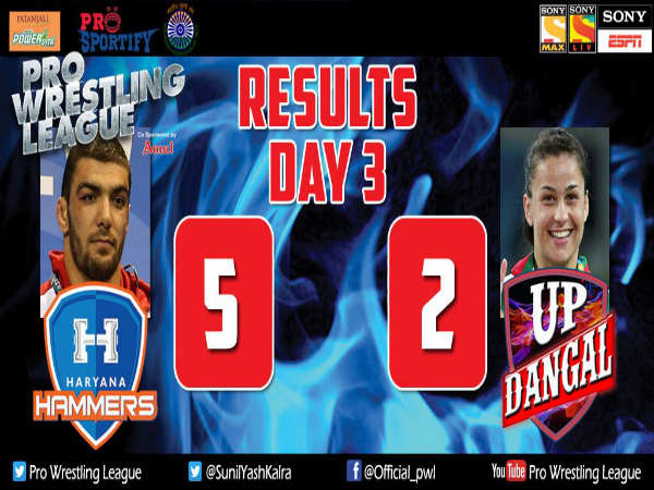 New Delhi, Jan 4: Haryana Hammers posted their second consecutive win in the second edition of the Pro Wrestling League (PWL) by defeating UP Dangal 5-2, here today, January 4.