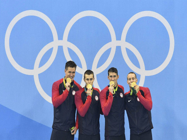 Rio De Janeiro, Aug 14: USA's Michael Phelps scripted history as he clinched the 23rd gold medal of his career. The American won the coveted medal in the Men's 4x100 team medley relay category.