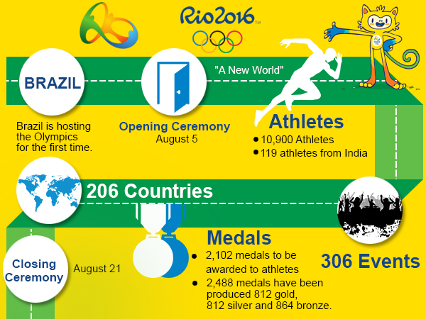 Rio de Janeiro, Aug 1: More than 10,000 athletes will be seen in action during the Rio Olympics 2016 from August 5 to 21 in Brazil.