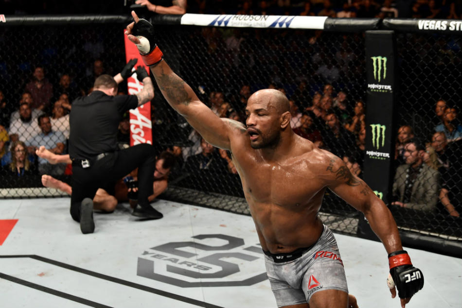 Romero took out former middleweight champion Rockhold with a massive third-round knockout with a pair of left hands at the 1:48 mark of the third round.