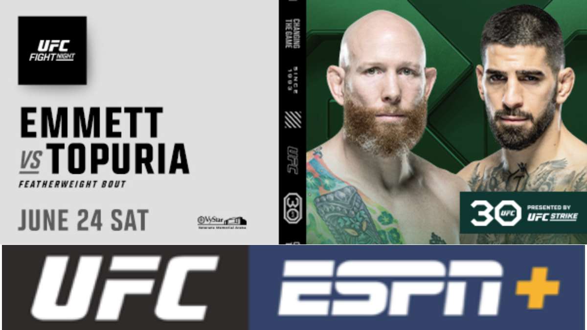 UFC Fight Night: Emmett vs. Topuria (also known as UFC Jacksonville 2023) is set to take place on Saturday, June 24 in Jacksonville, with the entire card available on ESPN+ and ESPN Deportes. The main card will also air on ABC and the Prelims on ESPN.