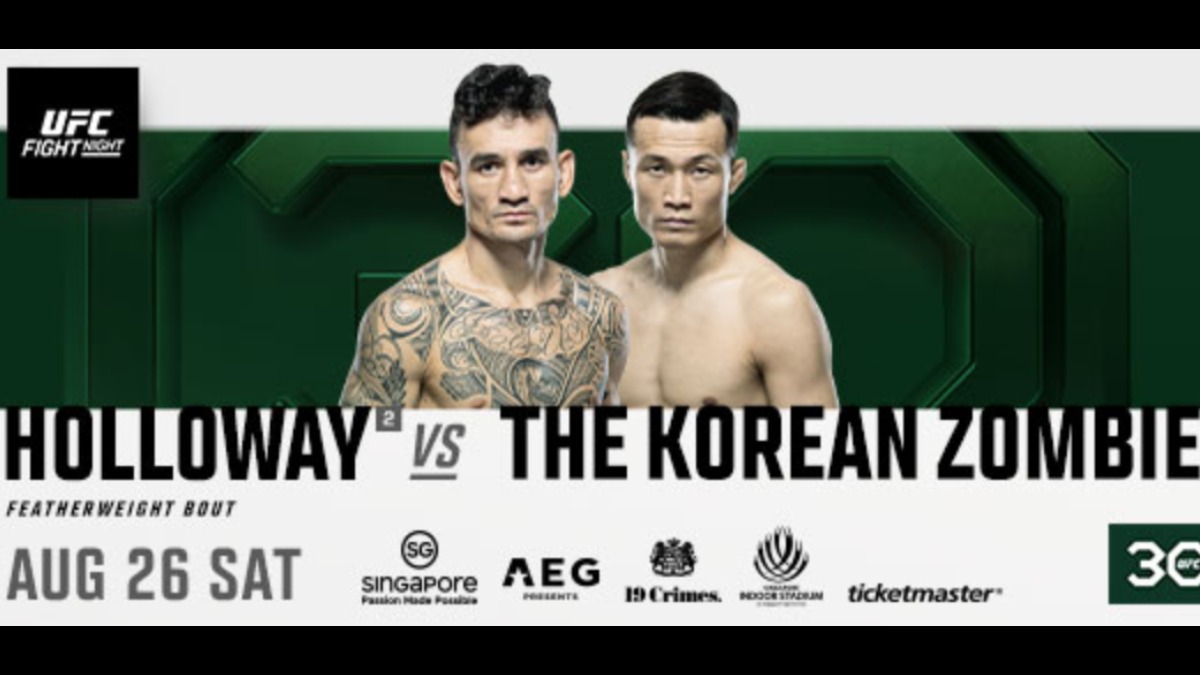 UFC Fight Night: Holloway vs. The Korean Zombie will take place at the Singapore Indoor Stadium and will begin at 5 PM SGT with the prelims, followed by the main card at 8 PM.