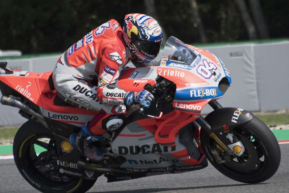 1. Andrea Dovizioso (Ducati) 2. Jorge Lorenzo (Ducati) +0.178 seconds 3. Marc Marquez (Repsol Honda) +0.368 4. Valentino Rossi (Movistar Yamaha) +2.902 5. Cal Crutchlow (LCR Honda) +2.958 6. Danilo Petrucci (Alma Pramac) +3.768 7. Johann Zarco (Monster Yamaha Tech 3) +6.159 8. Dani Pedrosa (Repsol Honda) +7.479 9. Alvaro Bautista (Angel Nieto) +7.575 10. Andrea Iannone (Suzuki Ecstar) +8.326 11. Alex Rins (Suzuki Ecstar) +8.653 12. Jack Miller (Alma Pramac) +16.549 13. Franco Morbidelli (EG 0,0 Marc VDS) +19.603 14. Hafizh Syahrin (Monster Yamaha Tech 3) +21.381 15. Aleix Espargaro (Gresini) +23.159