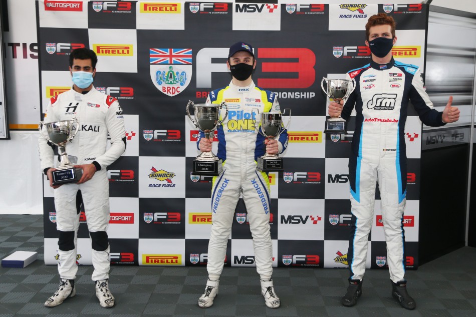 The final race on Sunday saw a similar start from Frederick but it was Maini, who lost out again, to not only drop to fourth but he eventually finished sixth due to earlier damage to end a surprising 2020 British F3 campaign, which he started on a three-days' notice from Hitech GP.