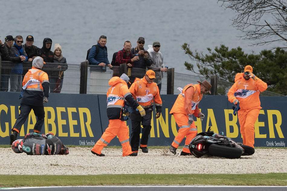 Petronas Yamaha rider Quartararo was taken to the medical centre at Phillip Island after a highside in FP1, with the painkillers he was administered forcing him to remain in the garage for the rest of the day.