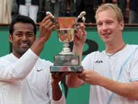 Paris, Jun 7: India's ace shuttler Leander Paes won his ninth Grand Slam title on Saturday, Jun 6. Paes and his Czech partner Lukas Dlouhy overcame a first set lapse to tame Wesley Moodie and Dick Norman in the final of the French Open men's doubles in Paris.