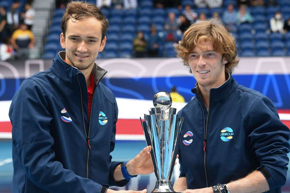"I want to thank my team. Andrey won all of his matches," Medvedev said. "Thank you for being with me here and lifting this trophy in a few moments."
