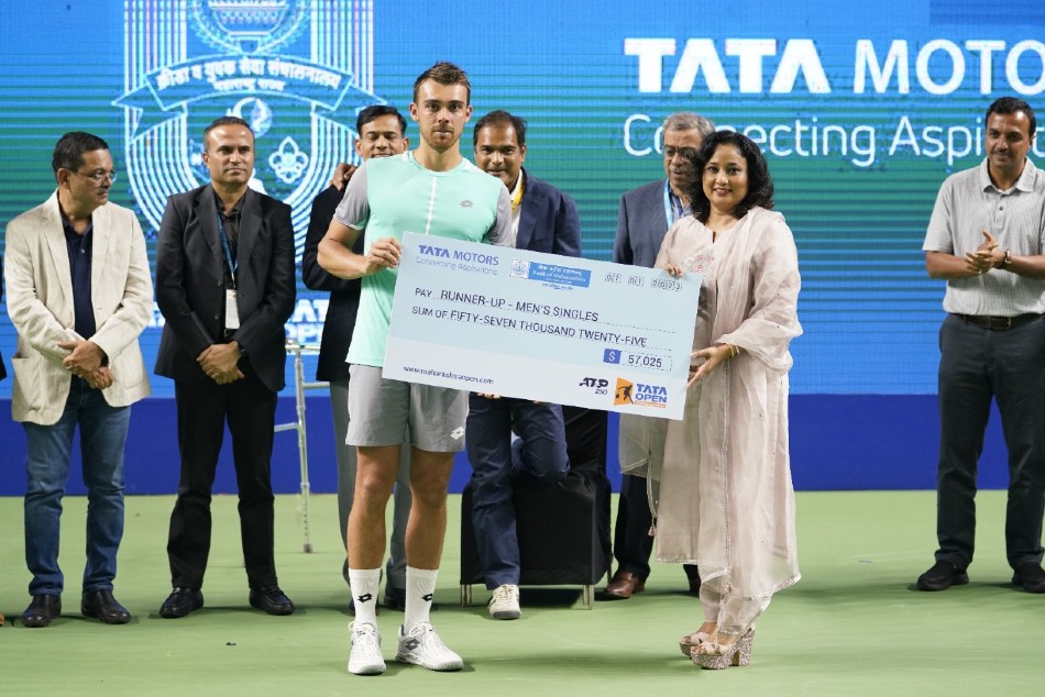 Pune, Jan 7: The Dutch tennis star Tallon Griekspoor dropped the first set but pulled off a stunning come-from-behind 4-6, 7-5, 6-3 win against the World No. 60 Benjamin Bonzi in a thrilling singles final to clinch the fifth edition of the Tata Open Maharashtra as well as his maiden ATP Tour title at the Balewadi Stadium in Pune on Saturday (January 7).