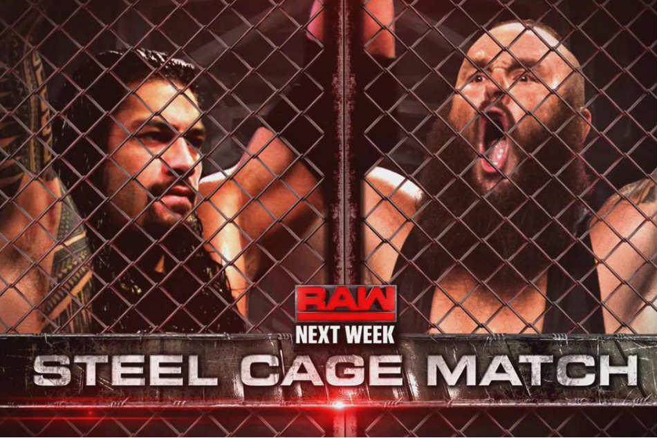 NEXT WEEK: The #BigDog @WWERomanReigns and The #MonsterAmongMen @BraunStrowman will be locked inside a #SteelCage on #RAW! pic.twitter.com/xolK31Zf1q
