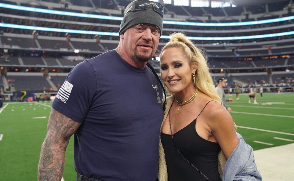 The Undertaker and his wife, also a former WWE Divas Champion, Michelle McCool were seen on the sidelines before last night’s game between the Dallas Cowboys and the Denver Broncos at AT&T Stadium.