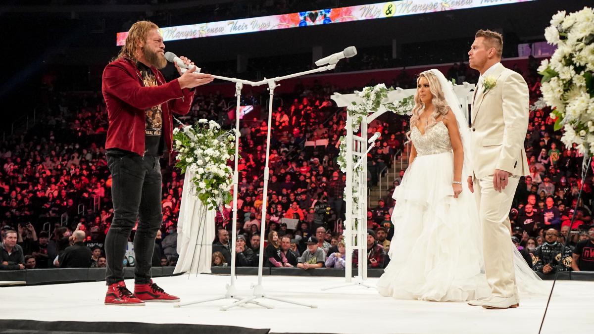 – The Miz and Maryse renewed their wedding vows in the main event segment of Raw where WWE Hall of Famer Edge interrupted. Edge said Miz embarrassed him for two straight weeks, so now it’s his time to embarrass him.