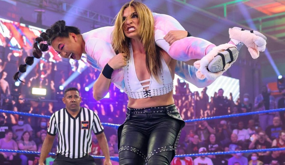 Gonzalez was dealing with a hurt knee (via a mid-match attack by The Toxic Attraction members) and she missed a Chingona Bomb attempt on Kai. Choo hit a moonsault on Gonzalez as Kai followed up with a double stomp for the pin to win.
